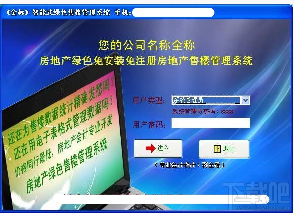 2.69 MB/2020-08-17主要功能优点:1、完全免安装免注册绿色软件,无需另外安装数据库即可使用操作。可以用普通优盘随身携带;2、真正的移动办公管理软件,由专业房地产会计专业设计完成;3、单机版也可实现互联网联网络功能,方便房企老总随身查询统计售楼信息含高清视频操作指南;4、如需严格保密,优盘一拔电脑上什么也不会留下,任何使用痕迹;