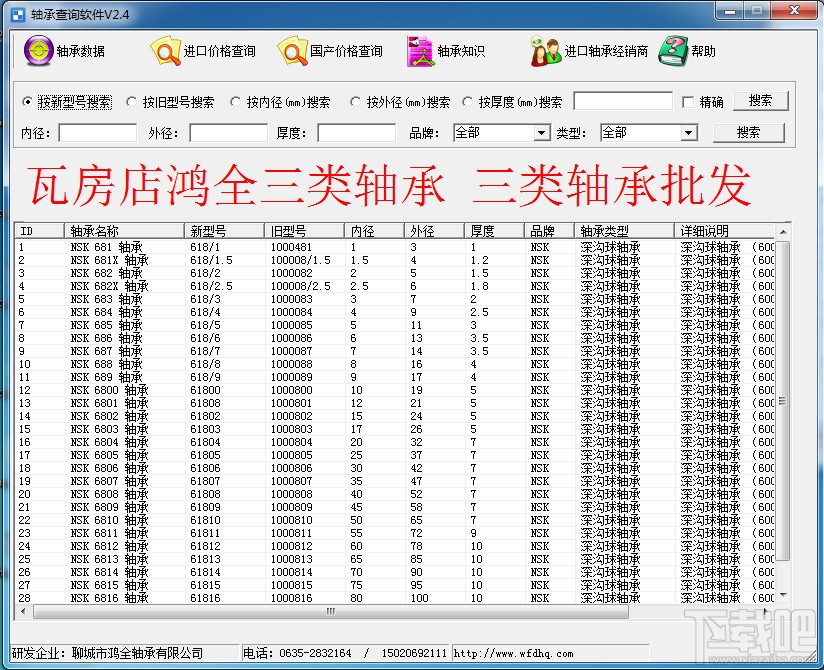 5、本系统共收录轴承型号记录6万多条,进口轴承价格记录16000多条,国战轴承记录25000多条