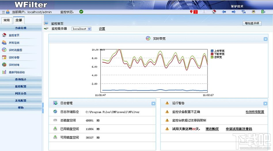 WFilter超级嗅探狗是共享软件,30天免费试用。如不需要企业功能,可以使用WFilter Free免费版。