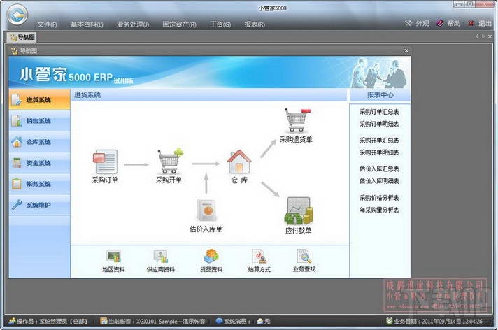 小管家ERP软件,是专为中小型企业量身打造的一款轻松便捷的企业管理软件。采用先进的ERP流程控制技术,全面整合采购、销售、库存和财务等管理环节,使企业资源得到合理调配、充分利用。适用于对企业的进销存管理、财务管理、客户关系 管理、员工工资管理和固定资产管理等。