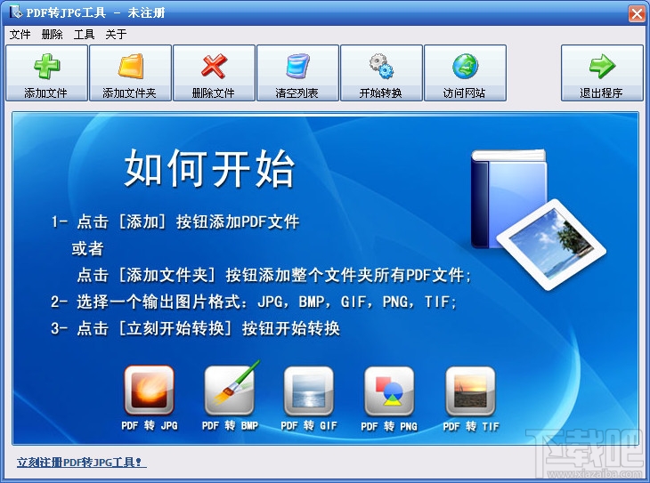 PDF转JPG工具(pdf转jpg软件)是一款界面简洁,操作方便的PDF转JPG软件。有了PDF转JPG工具,您可以方便的将PDF文档转换为JPG,BMP,GIF,PNG,TIF图片文件。