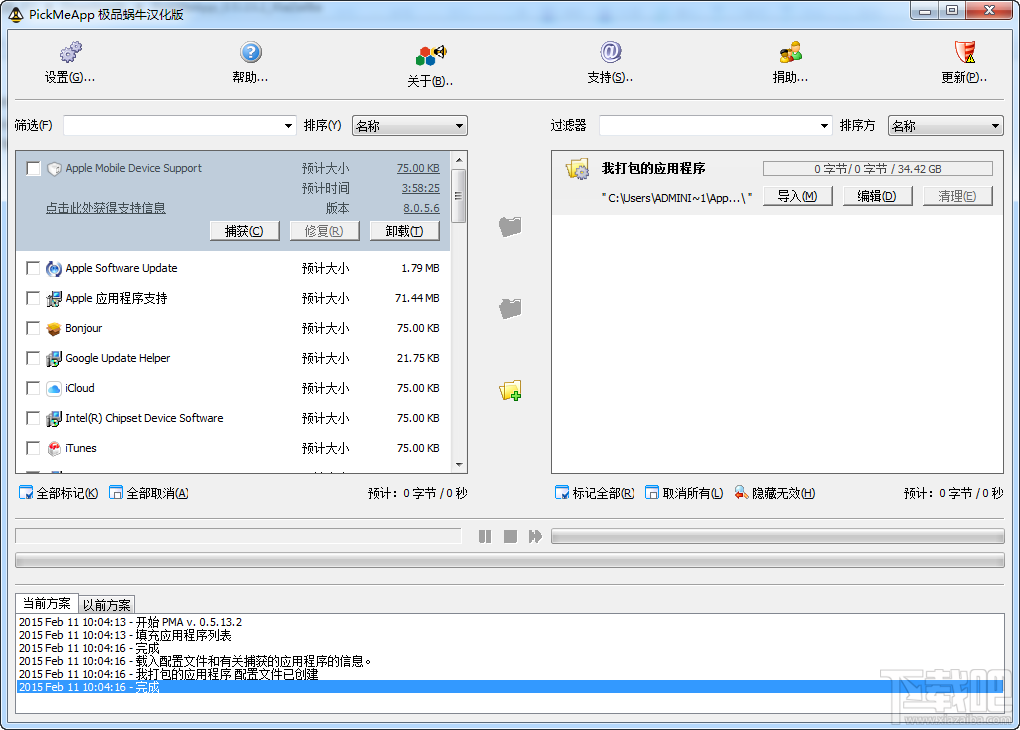4.81 MB/2020-08-17PickMeApp是一款非常实用的软件备份还原工具,通过这款电脑软件备份工具可以备份电脑中所有的应用软件以及程序,在需要的时候再对这些备份的内容进行还原,非常适合在系统重装时使用。使用说明:1、打开软件后后,在左右是所有已经安装的软件,就像是windows的“添加和删除程序”一样,你只需要勾选需要备份的软件,然后点击“capture”2、备份结束后,备份文件默认是保存在PickMeApp安装文件