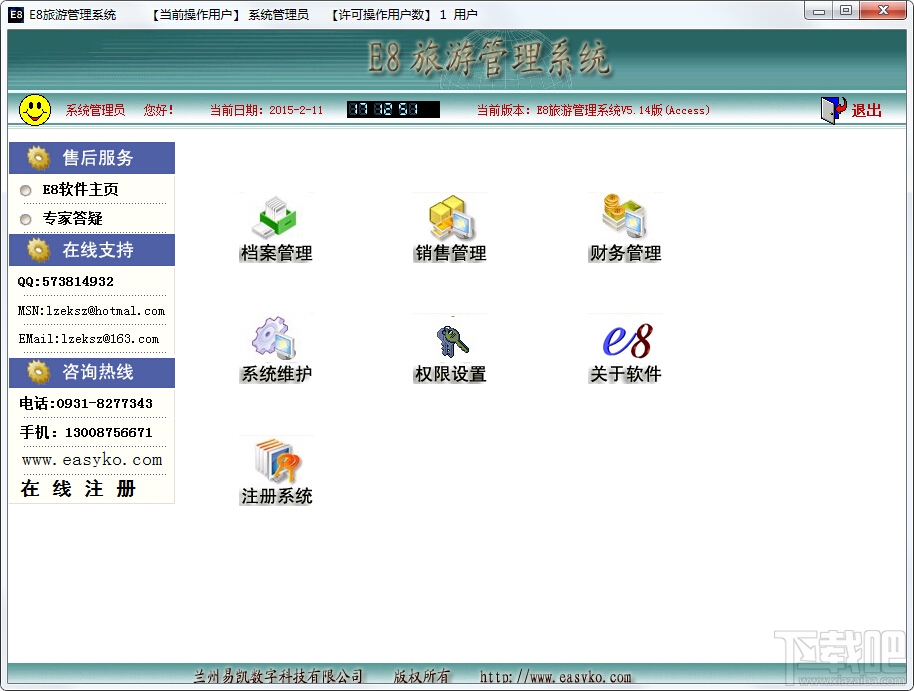 E8旅行社管理软件免费版是一款全方位的旅游信息管理系统。E8旅行社管理软件可以帮助旅行社、旅游公司、旅游相关行业在基础信息管理、直客销售、计调操作、同业分销、财务结算等各方面进行综合的管理。E8旅行社管理软件从旅游管理的角度出发,软件设计了从基础信息管理、旅游路线设计核算规划、销售业务登记、帐务结算到最后自动核算经营收益等诸多方便的功能,使您对你的经营情况了如指掌,从而更好的规划您的发展方向。同时,本软件还设置了景点、酒店、购物场所、交通工具等字典信息的查询与收集功能,极大的方便了您日常数据查询工作。