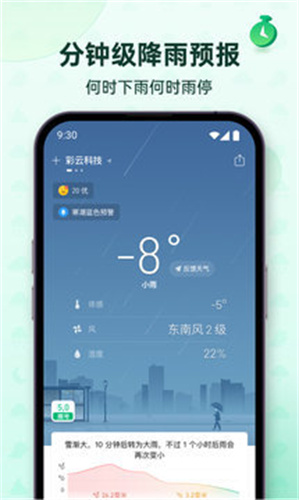 彩云天气app是一款包含丰富天气信息的天气查询软件。用户可以在这里获取最新的实时天气预测情况,同时享受多种实用资讯内容,极大地便捷日常生活。该软件提供权威专业的气象雷达外推图,能够了解运动趋势和雨星大小。独家支持收藏多个精确到街道的地址,用户可以关心自己关心的人。即使天气预报有误,用户也能吐槽并提供反馈,具有十足的便捷性和用户反馈性。