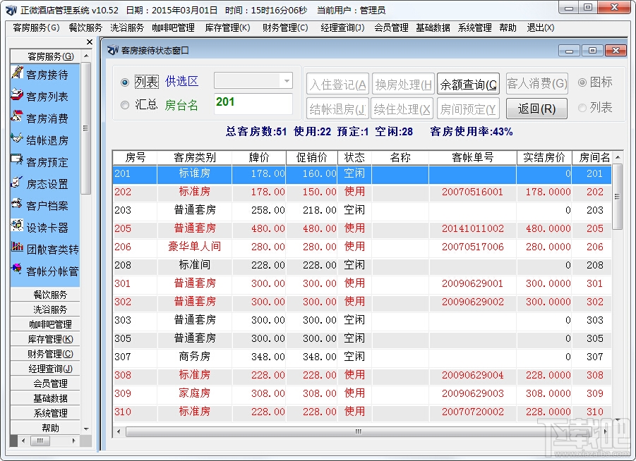 正微酒店管理软件是一款为餐饮娱乐业量身定制专业的管理软件,正微酒店管理软件适用于各种规模的餐饮娱乐企业,如:酒店,宾馆,餐饮,康乐,洗浴宾馆等。正微酒店管理软件完美为餐饮娱乐业全面解决管理上的问题。正微酒店管理软件主要由以下基本模块构成:餐饮服务,客房服务,洗浴桑拿, 库存管理,吧厨管理,财务管理,统计查询,经理查询,会员管理,系统管理,基础数据设置等。同时本管理软件还集成了门锁和话费的管理模块,支持PDA,手机无线点单,既大大提高酒店管理软件的使用效率, 还有效地控制了酒店的跑,冒,滴,漏现象的发生,使酒店管理软件更加完善。本软件简单实用,用户可快速上手,操作人员一般不用培训就能使用该软件。