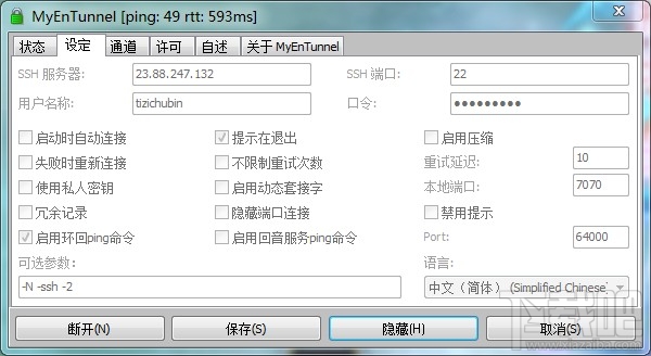MyEnTunnel是一个非常好用的建立和维持的TCP SSH扫描隧道的windows客户端.它占用非常少量的CPU和系统资源(可以忽略不计吧哈)。MyEnTunnel可以和PortaPuTTY同时工 作,也兼容Wine。在访问某些网站查阅技术资料时常常会用到。