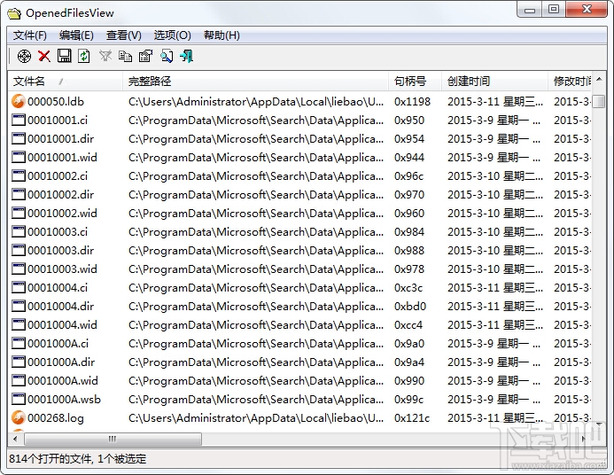 OpenedFilesView绿色中文版是一款用于高级用户,显示当前正在被应用软件或者进程使用的位于你的系统当中的所有文件的列表的工具。该列表包括路径,句柄,属性,进程名称等等在内的额外文件的指定信息。该软件包括一个终止选择的进程或者文件句柄的选项,以及用于创建所有或者在该列表当中所选择项目的一个报告的选项。