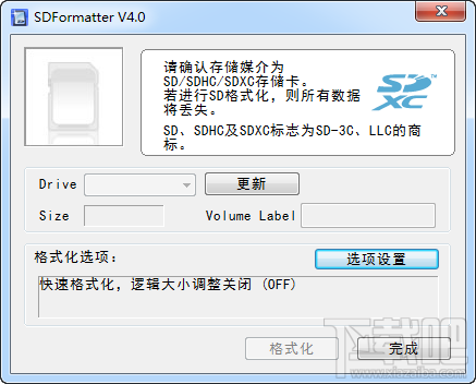 Panasonic SDFormatter是松下出品的内存卡格式化工具,支持其他任意品牌的SD卡、TF卡和SDHC Card(SD/SDHC 存储卡),并且严格遵照SD内存卡规格来格式化,并提供对SD内存卡更快和容易的操作方式。手机sd卡格式化软件SDFormatter通过USB读卡器格式化内存卡后,能够恢复大部分不能使用或不能正确识别的内存卡。