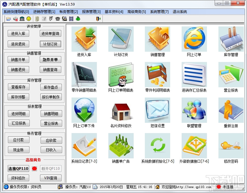 27.09 MB/2020-08-17汽配通汽配管理软件是一款通用的汽配管理方面的汽配软件,功能有仓库管理、帐务管理、报表管理等。汽配通的功能包括增加批量进货的功能、增加配件拆分的功能、增加配件合并功能、权限管理优化、数据备份和恢复优化等等。