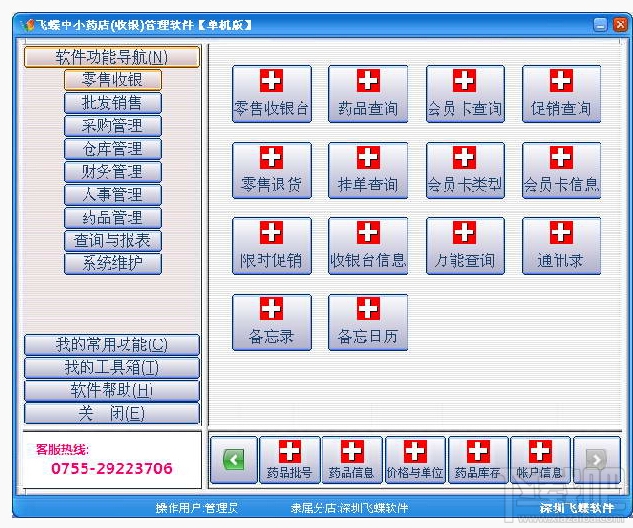 飞蝶中小药店收银软件(小药店管理软件)只要有一台电脑(扫描枪和小票打印机等 可选配),就可以像大型连锁药店一样收银管理!