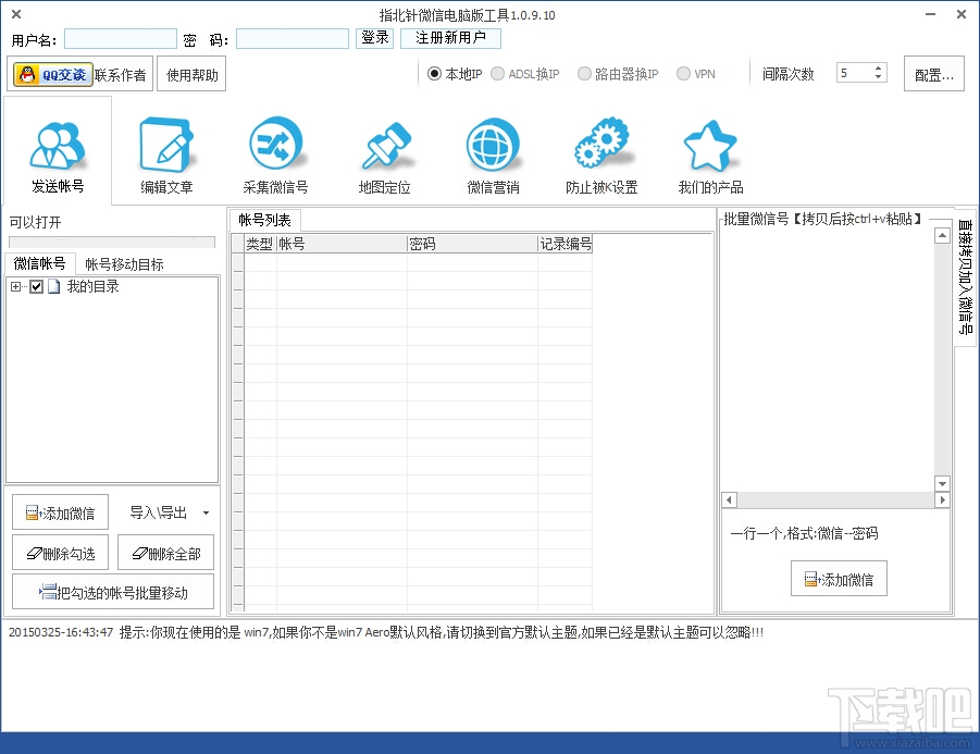 指北针微信推广工具是一款电脑端上全自动的微信推广软件,可以使用单个机器运行微信营销环境,安全稳定,快捷方便。指北针微信推广工具包含微信帐号管理,地图坐标选定定位,QQ号搜索,手机号,搜索陌生人加好友,摇一摇,和附近人打招呼,发送所有好友,分享公共号,朋友圈推广。