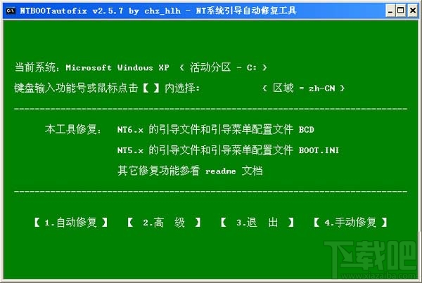 NTBOOT AutoFix 系统引导功能修复软件高级子菜单功能介绍:
