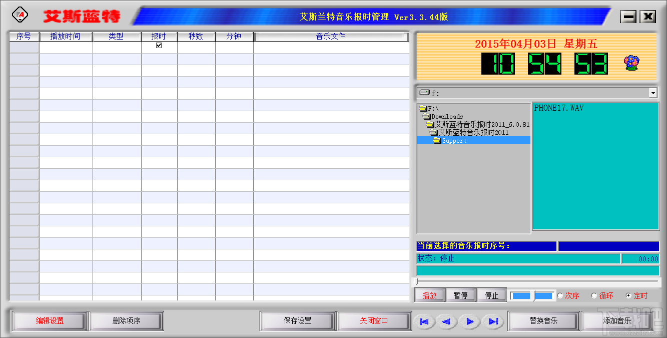 艾斯蓝特音乐报时管理是一款用于公司、工厂、学校的电脑整点报时软件,可以使用音乐作为报时铃声。