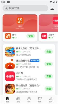 1、方便的搜索功能,只需要输入几个关键字,快速找到你需要的应用,能快速的去进行查找以及获取。