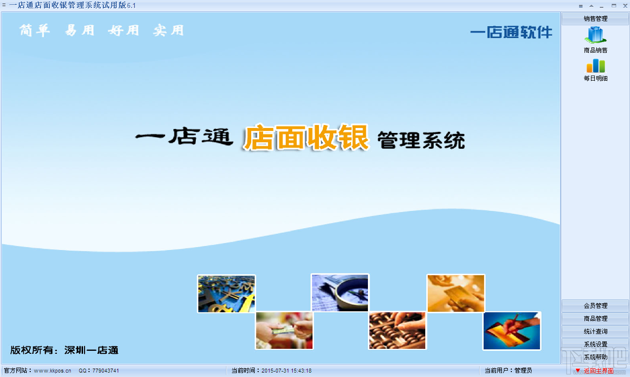 一店通小型超市管理系统是一套专门针对中小型零售店而开发的综合性行业管理软件,软件支持散客和会员的消费,集前台收银,会员消费管理,商品销售管理,营业收入统计等功能于一身。软件由商品管理,进货管理,会员管理,销售管理,统计查询等几大模块组成,支持条码枪、小票打印机,顾客显示屏等硬件,特别适用于中小超市或服装店、婴幼儿用品店、玩具店、化妆品店、饰品专卖店、电器、文具图书、通讯器材店等中小型行业。