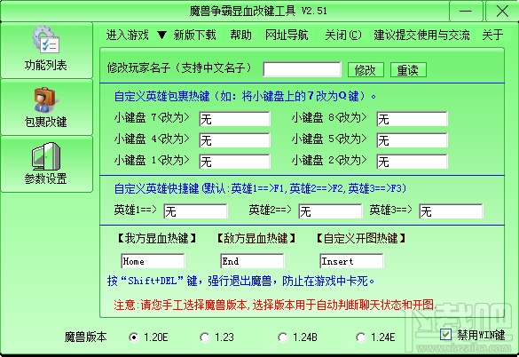 魔兽显血改键工具功能列表: