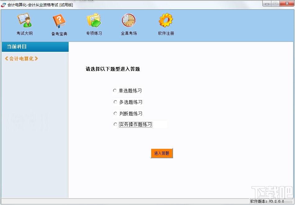 会计从业资格考试系统是一款仿真操作环境,模拟真实考试的界面、流程、步骤、题型,并且涵盖了很多的考试原题的练习工具。软件每道题都可以自动评分,包括电算化实务操作题,倒计时显示,答案步骤及成绩一目了然,方便您的参考判断。电算化操作题自带操作演示视频,不会做的题随时可以参考演示操作。让你学习起来更方便。