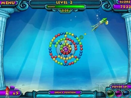 游戏规则和祖玛是一样的,但是游戏场景以及游戏主角的可移动性是和祖玛大大不同的。熟悉的游戏规则,不一样的游戏感受。