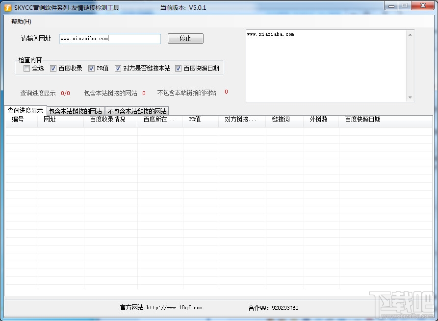 友情链接批量检测工具可以自动查询友情链接在百度的收录情况、百度快照,站长必备利器,同时查询友情链接的PR以及对方是否有链接本站,即时了解哪些友情链接私自撤下链接,能自动识别JS链接、iframe链接等欺骗链接的方式,让站长轻松管理网站的友情链接。 检查友情链接同时,查询友情链接首页在百度执行site网址命令时候,首页是不是在搜索结果中第一位。这个能作为判定网站在百度的权重的依据,但不是绝对。