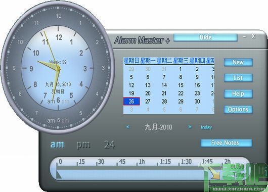Alarm Master是一套个人管理的小应用程序集合,其中包含报警时钟,计划表,定时器和日历。它支持更换皮肤。界面非常优美。 Alarm Master Plus在原来的基础之上增加了反锯齿技术和透明绘图。