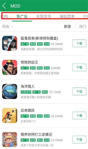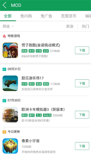 2、进入首页直接点击mod栏目开始游戏,在这里MOD也就是代表修改版游戏。