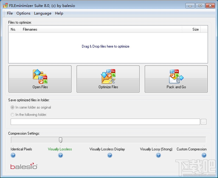 FILEminimizer Suite压缩图像和照片,优化Word,Excel,PowerPoint和PDF文件的大小能够高达50-90%,而无需打包压缩.该软件提供了一个直观的界面,能够帮助您优化您办公和图像文件的大小,而无需改变原有的格式或质量。FILEminimizer Suite能够集成到Microsoft Office和你的电子邮件程序(支持Microsoft Outlook和Lotus Notes客户),可以在邮件被发送前,直接优化邮件中的办公和图像文件附件。你可以轻松的避开邮件大小限制而不会阻塞你邮件接受者的信箱。它缓解了Microsoft Exchange和Lotus Domino电子邮件服务器。