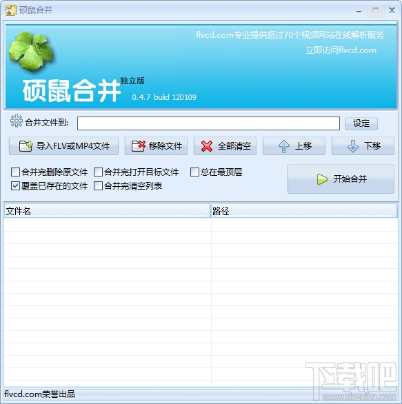 硕鼠合并是一款非常好用的视频合并软件,硕鼠合并独立版采用了mp4box和flvbind命令行来进行视频合并,gui界面整洁简单。硕鼠合并独立版还能够合并除硕鼠以外的视频。