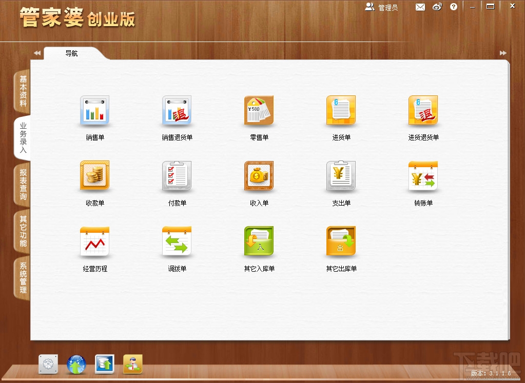 管家婆创业版采用“简单、易用”的设计理念,重视用户体验及互动。管家婆创业版产品自带数据库,安装仅需3步,操作简单,易学易用,轻松上手,终身免费。使用管家婆创业版,只需将企业发生的业务单据录入系统,就能实时掌握企业的经营状况,资金、库存、往来、收支、利润等一目了然。管家婆创业版是一款面对个体商户及小微企业的入门级进销存管理软件,是管家婆首款全面扶持小微企业发展的终身免费进销存管理软件。
