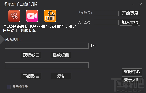唱吧助手是一款免金币导出歌曲和mv的应用软件。唱吧助手内存小快速安全,一件获取歌曲信息解析歌曲下载链接,可在线播放和分享。唱吧助手内存小,快速安全无插件,将唱吧歌曲和mv下载进行到底!