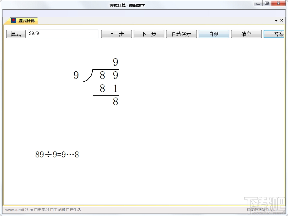 他按照计算规则逐步演示计算的每一个步骤,可以显示提示信息,直观形象地展示计算过程,另外,他还支持自主练习,学生提交答案后软件会自动检查判断该答案是否正确。