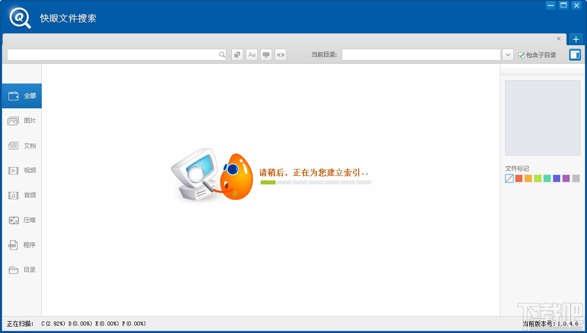 快眼搜索是一款快速文件搜索软件,简单快捷,占用资源少。支持通配符模糊查询,多种过滤方式,多种排序方式,为您带来急速的搜索体验。可以快速搜索电脑中的图片,文档,视频,音频,压缩文件,程序等。