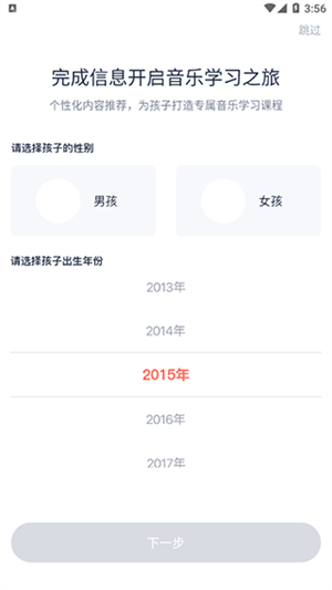 2、这里打开软件后设置好自己的性别和年龄点击下一步。