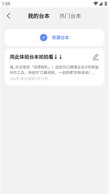 说得相机ai提词器是一个专为视频创作者设计的视频创作工具,内有AI提词器,在拍视频的时候有提词器就不用担心忘词了,拍摄的时候自带美颜效果,脸上的瑕疵统统都不见了,以最好的状态呈现自己,提供超多视频模版,选择模版一键成片。