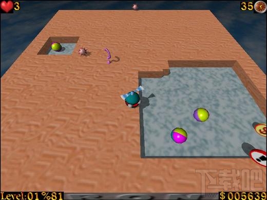 空中飞行球 AirXonix 是一款非常时髦的游戏,是著名的Xonix的3D重制版本。在Xonix中,你操作一个设备,在几个格子中移动,周围遍布怪物球,你的任务是赶走怪物球,占领更多的领域。AirXonix的规则类似,不同的是你操作的设备在立体空间中移动,所有东西都是全三维的。