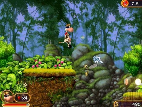 超级奶牛(Super Cow)是一款非常有趣的游戏。Super Cow中包括数十个章节和关卡,还特别加入的奖章收集环节。充实的过场动画贯穿故事情节,另游戏主题更为完整,玩家将享受到充足的挑战乐趣。超级奶牛故事讲述了坏博士Duriarti越狱后,抓走了生活在阳光山谷的动物们,现在你需要帮助农场守护者超级奶牛去援救它的朋友。
