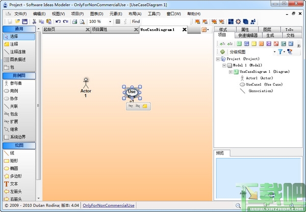 Software Ideas Modeler是一个功能强大,体积轻巧的工具,用于创建UML图像。它支持13种URML图像,混合图片,实体关系图,数据流图,需求图 ,用户界面建模以及CRC卡片。