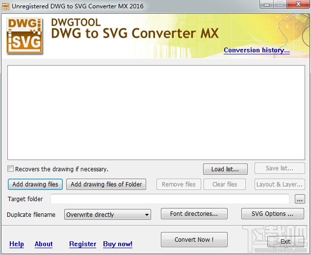 DWG to SVG Converter MX是一款无需AutoCAD软件,可以将DWG格式直接转换为WMF、DXF、SVG、DWF、PDF格式的工具, 它可以非常快速的转换DWG, DXF,DWF文件到矢量SVG文件。