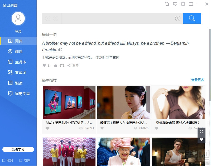 金山词霸2016是一款功能强大而又全面的词典软件,金山词霸电脑版采用更年轻,时尚的UI设计风格,界面简洁清新,在保证原有词条数目不变基础上,将安装包压缩至原来的1/3,运行内存也大大降低,金山词霸完整收录柯林斯高阶英汉词典;整合500多万双语及权威例句,141本专业版权词典;并与CRI合力打造32万纯正真人语音。同时金山词霸支持中文与英语,法语,韩语,日语,西班牙语,德语六种语言互译。