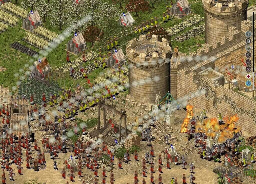 要塞十字军东征除了采用单人剧情模式,还有直接进行现成要塞战争的关卡挑战模式、支持八名玩家共同对战的多人模式,另外还加上一个可以自己设计任务剧情的地图场景编辑器。玩家在要塞内所执行的政策、规定的税收、对敌人采取的战略又会影响到居民对玩家的态度,古人云:得人心者,得天下;失人心者,失天下。一旦玩家没有达到居民对你的期待或者要求,那么居民就会开始离开,搬到其他城市去住,没有了居民的支持,物资也就没有了保证,而这样的结果也就是要塞的灭亡。