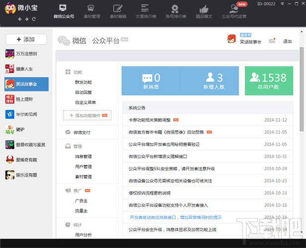 微小宝微信编辑器是一款专业的微信公众号编辑软件。使用微小宝,你可以轻松管理多个微信公众号,软件内置海量的文章素材,文章高大上,只需一步。同时,微小宝还拥有多种排版模式,帮助轻松打理版面,轻松排版。