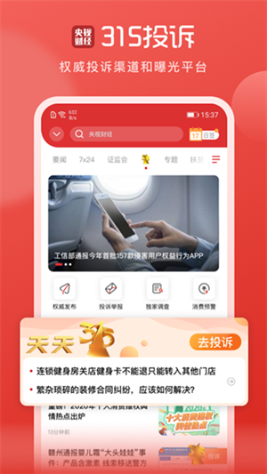 央视财经app是一款专注于财经资讯的APP,它具有长截图分享、短视频聚合窗口、竖屏新体验、315投诉专区、看新闻直播、积分中心等特色功能,根据用户的阅读习惯和兴趣进行个性化推荐,为用户提供符合其口味的财经资讯,让用户更加高效地获取所需信息。提供实时的股市行情、外汇行情等,让用户随时了解市场动态,做出更明智的投资决策。