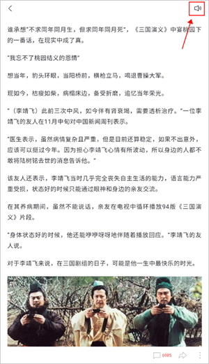 2、点击你要想阅读的文章,点击界面右上角的“小喇叭”图标就可以听新闻了。