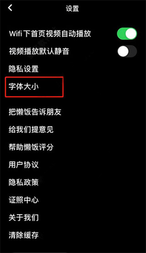 3、点击页面左上角齿轮图标,进入设置页面后,点击字体大小选项,进入后拖动底部滚动条,即可调整字体大小。