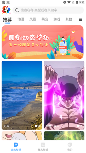 1、打开软件,直接进入主界面,可以看到主要是划分了动态和静态壁纸。