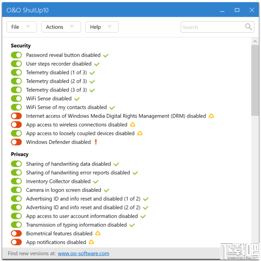 ShutUp10是安全软件公司O&O Software专门针对Windows 10系统环境开发的反监听/间谍工具,在今天发布的更新版本中重新封装成单文件可执行EXE文件,提升软件的易用性。在内容方面新版引入了包括微软SpyNet和Windows Defender在内的更多隐私设置,并能通过普通(非管理员)用户启动应用或设置偏好选项。
