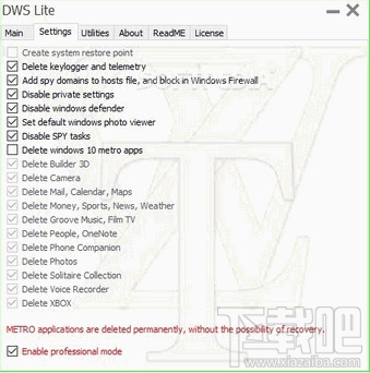 Destroy Windows 10 Spying,它是一款禁用Win10监视工具,同时去除Win10间谍软件的工具。软件可以阻止发送匿名数据,删除那些无法用正常方法删除的应用程序。你还可以用它来编辑hosts文件,以便屏蔽匿名数据收集服务器。