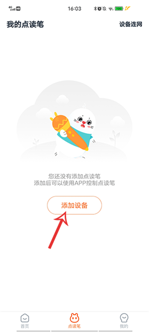 1、打开软件,然后在“点读笔”界面,点击添加设备。