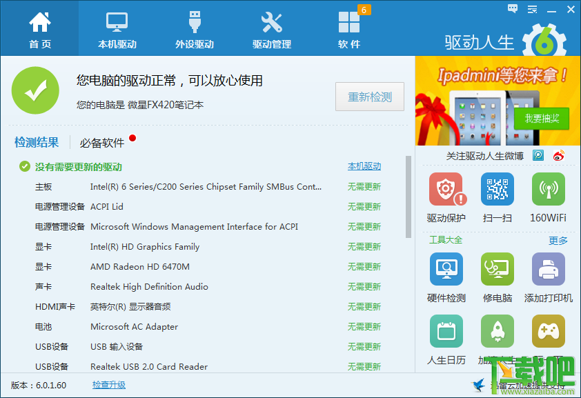 4、提供免费的驱动安装及更新,保护电脑硬件驱动程序