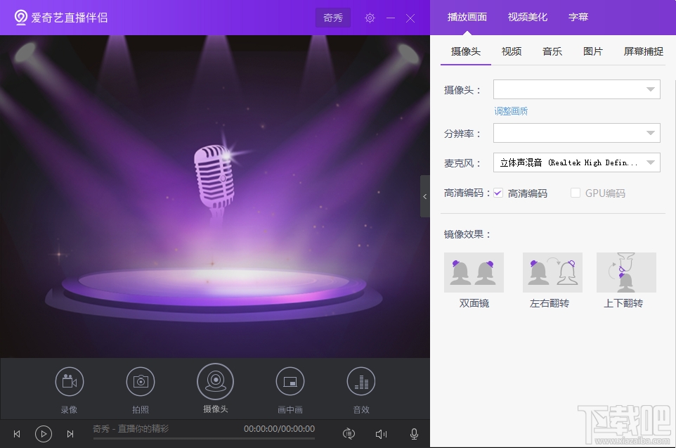 爱奇艺直播伴侣是爱奇艺为旗下的美女直播平台奇秀提供的一款直播辅助工具,采用先进的视频压缩传输技术,可以提供更大屏幕更低带宽的高清视频。奇秀的主播们可以通过这款软件进行直播,软件包含了摄像头的美化功能、视频录制功能、音视频播放等功能,让主播们可以更轻松的进行在线直播。