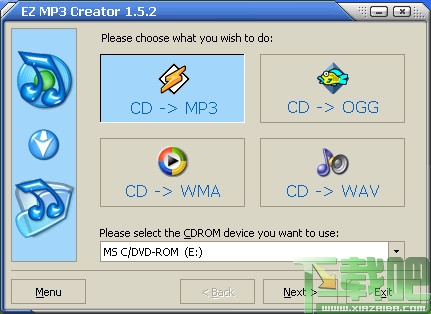 EZ MP3 Creator是一个转换CD音乐的好工具,EZ MP3 Creator能够高速、高质地从音乐CD中抓取数字音轨,编码成MP3、Ogg、WMA或WAVE格式的音乐文件。同时,EZ MP3 Creator 可以查询网络音乐CD库,提取专辑、歌手、歌曲等信息,保存到输出文件中。EZ MP3 Creator拥有一个非常易于使用的向导式界面,通常,您只需轻轻点击几下鼠标,就能将音乐CD转换成您所需要的音乐文件。